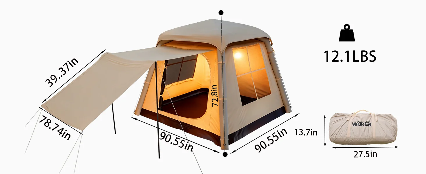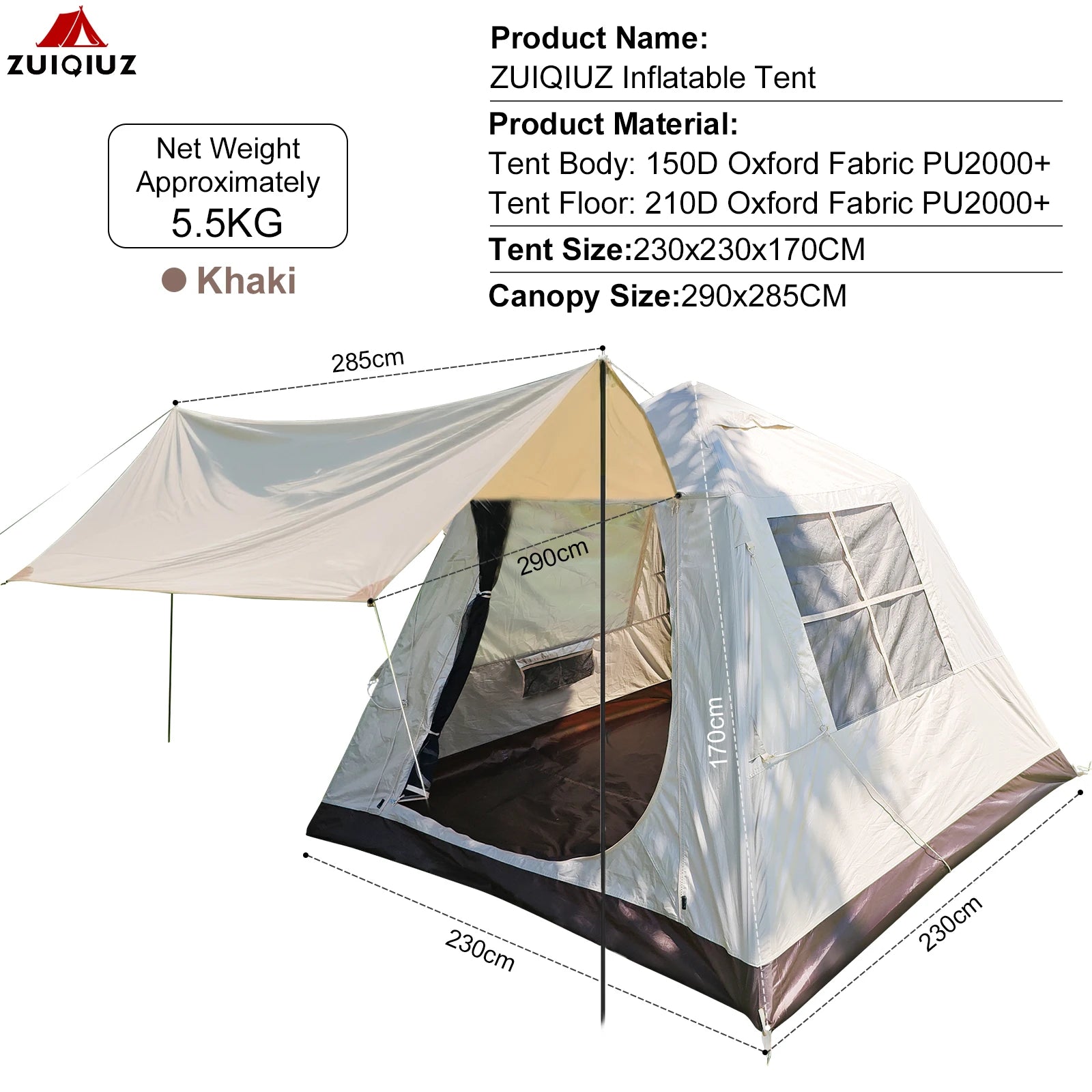 Automatic Inflatable Camping Tent,Easy Set up 3-4 Person Glamping Outdoor 4 Season Air Blow Up Tents.Rainfly & Windproof tent