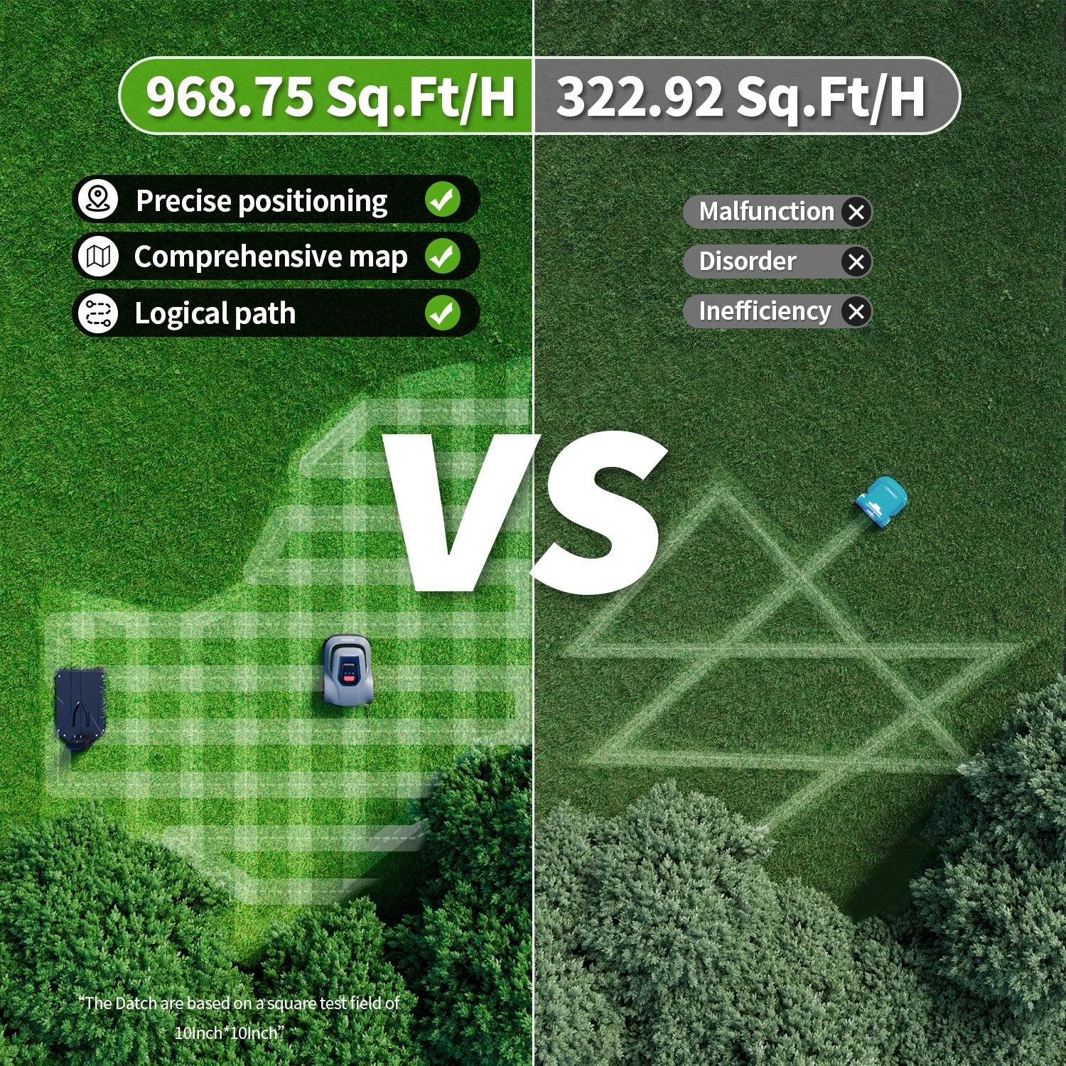 【Efficient MowingRedkey pioneers industry-first C-ToF navigation technology with inch-level precision for accurate positioning and mapping. Its intelligent path planning combined with cross-cutting patterns delivers 3X faster coverage (100 m²/h) compared to traditional robotic mowers.