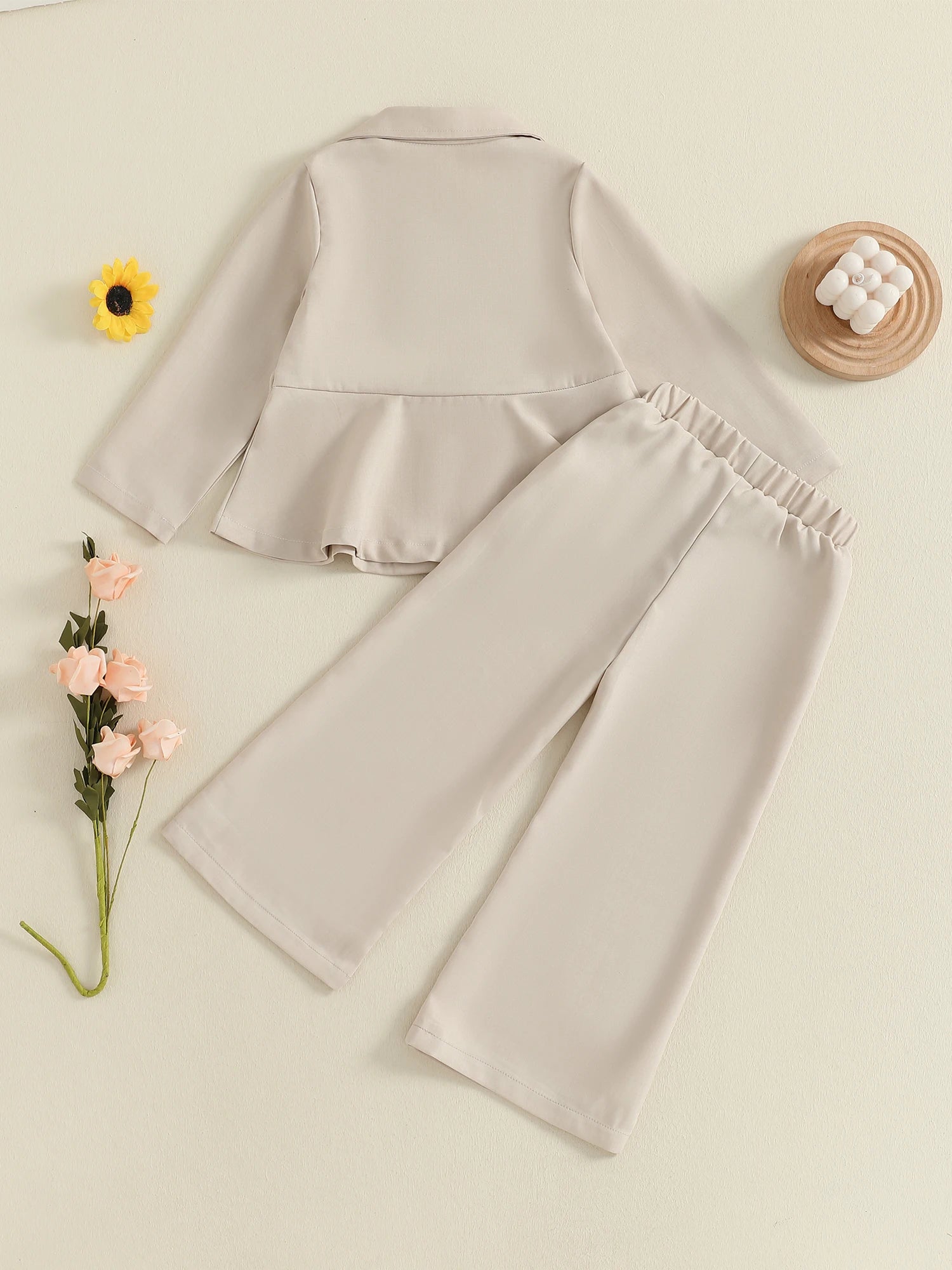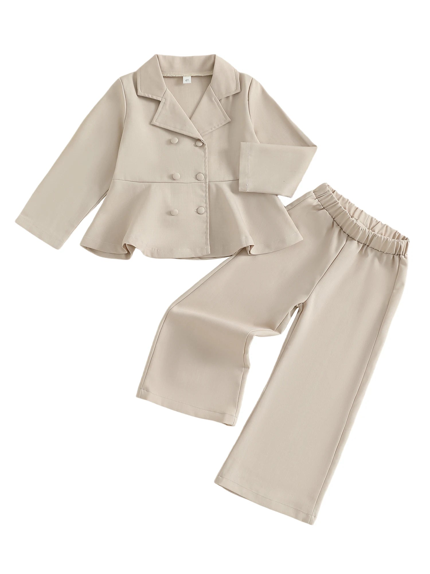 Kids Girl 2Pcs Fall Outfits Long Sleeve Double Breasted Jacket + Pants Set Toddler ClothesFeatures:
