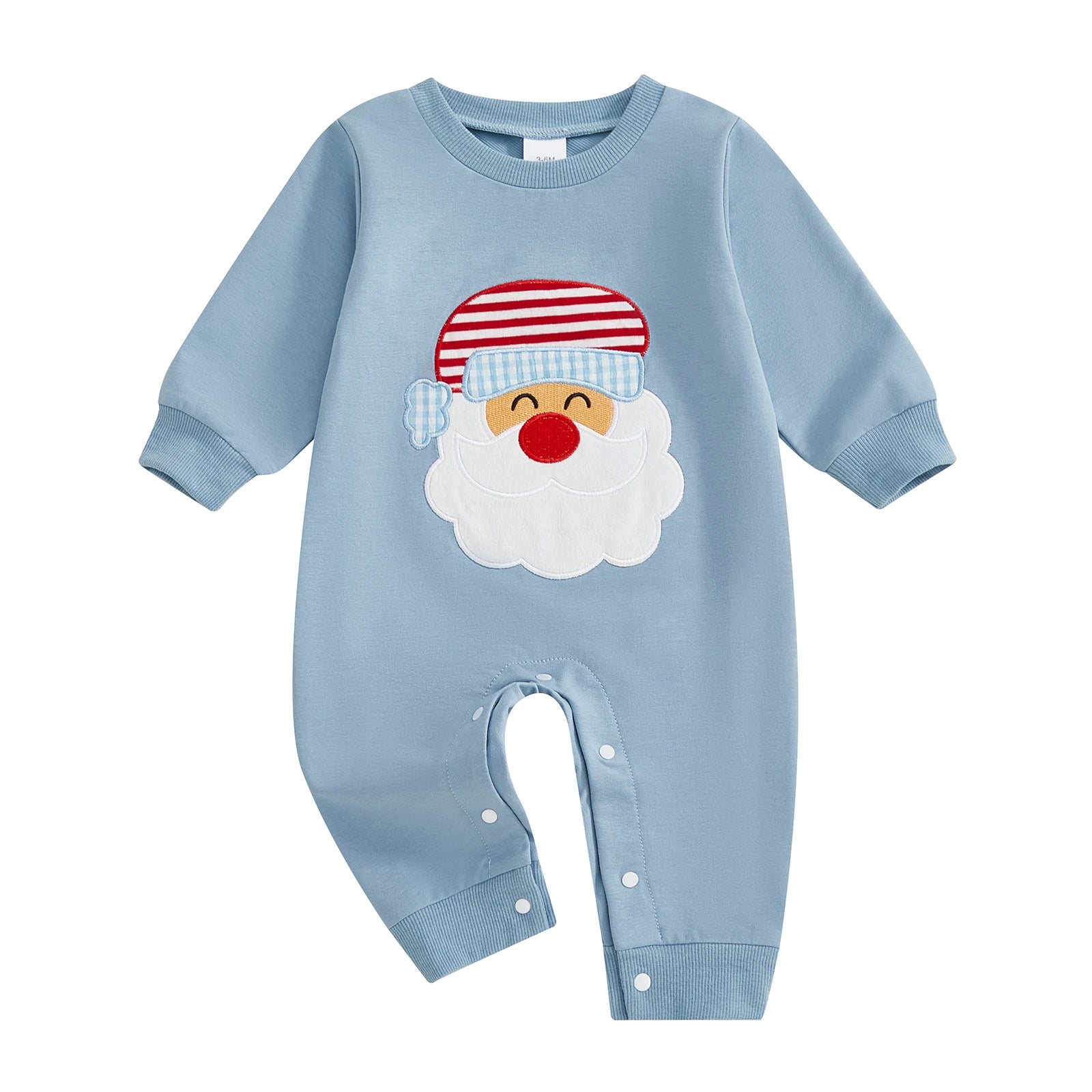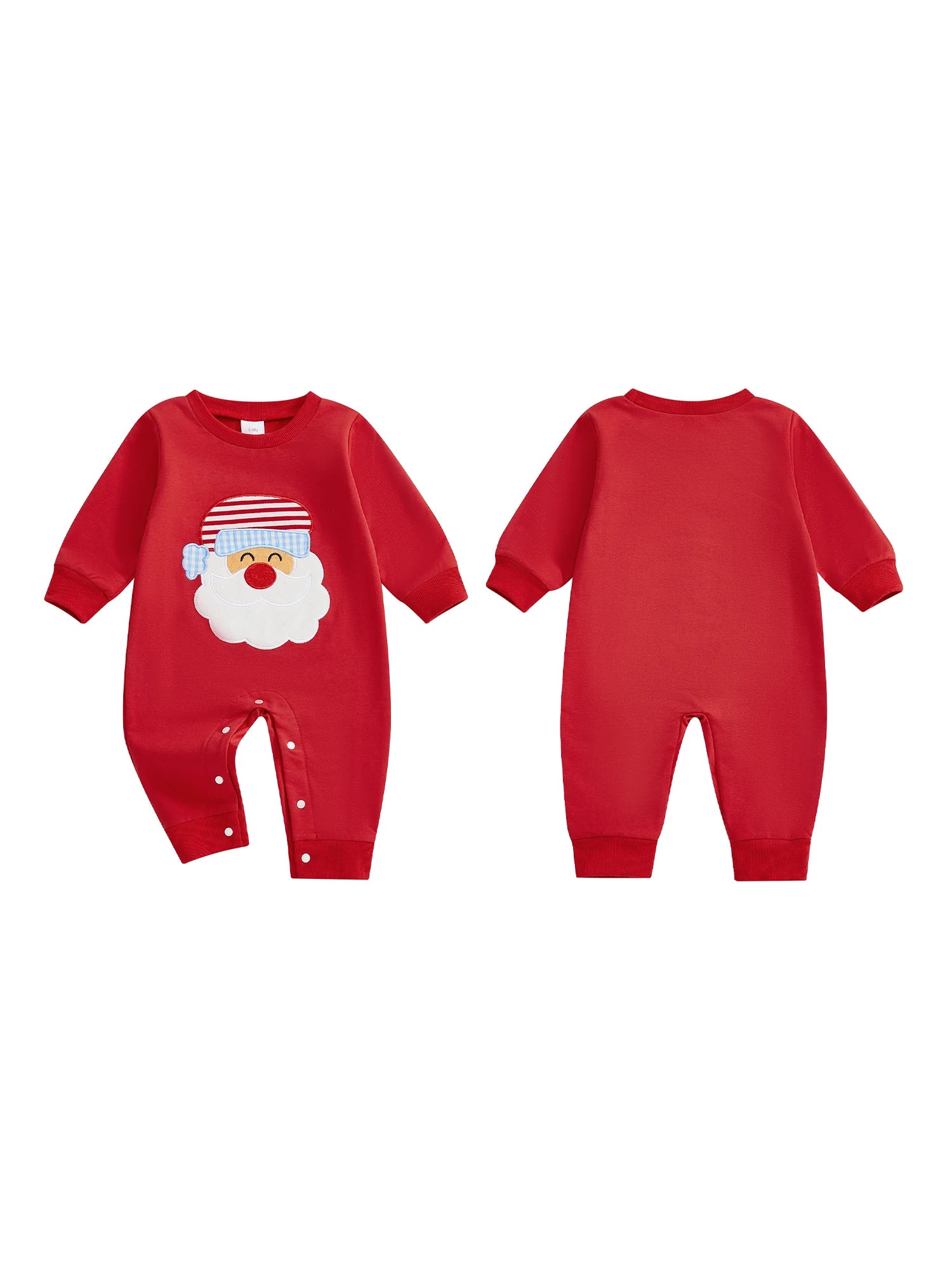 Baby Boy Girl Christmas Romper Santa Applique Crew Neck Long Sleeve Sweatshirt Jumpsuit Cute Winter Fall Clothes