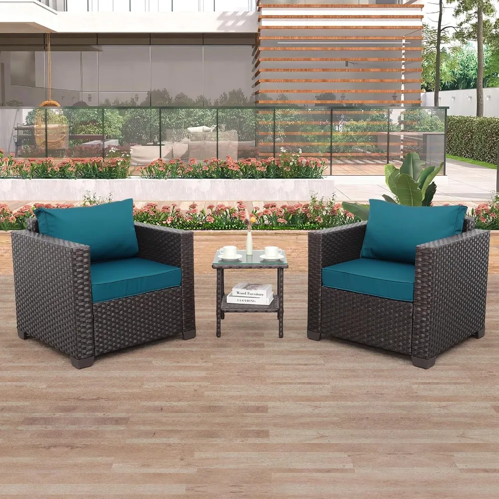 Patio Furniture 3 Piece Patio Set Patio Conversation Sets Outdoor Chairs and Glass Side Table Balcony Furniture with Non-Slip